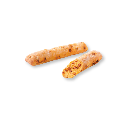 Dieses Brötchen, inspiriert von iberischen Aromen, ist reich an qualitativ hochwertigen, köstlichen (über Buchenholz geräucherten) Chorizo-Stücken und wird durch einen Hauch von Paprika für eine farbige und duftende Krume verfeinert.