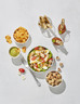 WEIZENMEHL, Wasser, geräucherte Chorizo 17% (Schweinefleisch 16% [EU Ursprung], Glukosesirup, Gewürze und Kräuter, Salz, Antioxidantien (Natriumascorbat), Konservierungsstoff (Natriumnitrit)), Olivenöl, Paprika, Salz, Hefe, WEIZENGLUTEN, WEIZENMALZMEHL. Kann Spuren enthalten von: Milch, Sesamsamen, Schalenfrüchten, Eier.