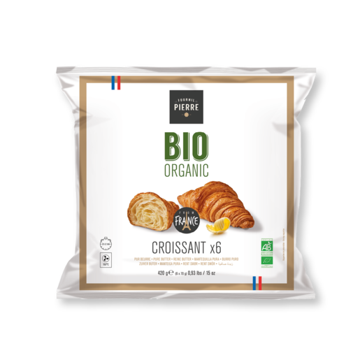 Dieses knusprige BIO Croissant aus einem Rezept mit hohem Butteranteil hat intensive Geschmacksnoten und eine zartschmelzende Textur.