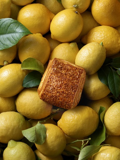 With its elegantly folded shape, this Viennese pastry is appreciated for its creamy and intensely lemon-flavoured centre, combining California almond paste, pastry cream, lemon juice and pieces of candied lemon from Italy. The crêpe dentelle topping provides a delicate crunch, enhancing the richness of this creation, which perfectly combines freshness and indulgence!