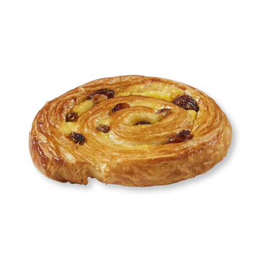 Made with a butter-rich recipe, this pain aux raisins has a soft centre, naturally sweetened raisins and a smooth custard cream.