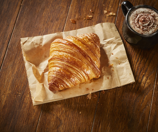 Le croissant ARTY : une nouvelle forme originale, moderne et pyramidale qui offre un feuilletage extérieur fin et délicat avec des feuillets bien marqués et une mie soyeuse.