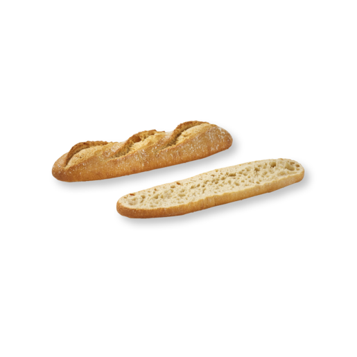 A classic half-baguette offering well-loved flavours, made with "Label Rouge" wheat flour. It has a lovely cream-coloured open crumb.