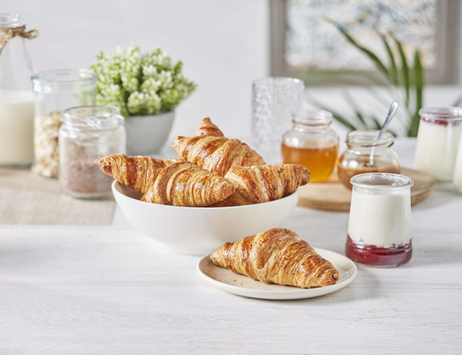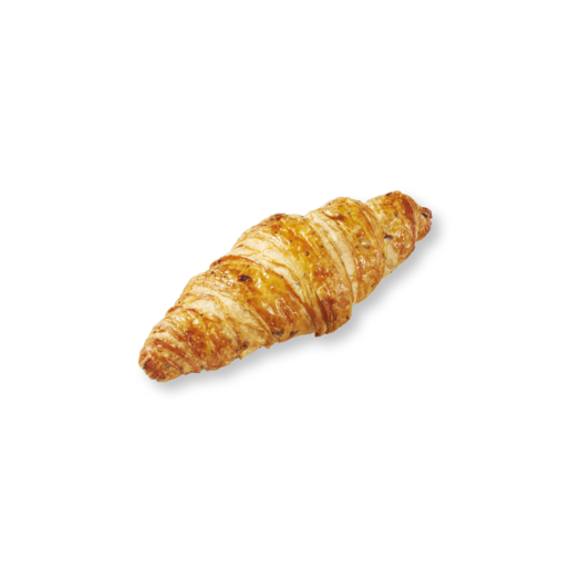 Croissant voluminoso y generoso con un bello color dorado que deja aparecer múltimples semillas de cereales en la masa. Una textura crujiente por fuera y esponjosa por dentro con un delicioso aroma de mantequilla fresca.