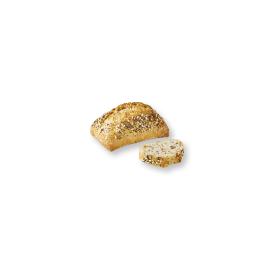 Un panecillo rico en semillas, tanto por dentro como en topping, elaborado con harina de trigo.