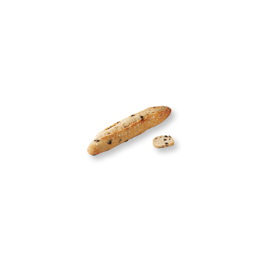 Ce petit pain, inspiré des saveurs méditerranéennes, est riche en morceaux d’olives noires et rehaussé par une touche de thym.