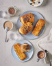 Un coeur chocolat blanc encadré par deux barres de chocolat au lait, pour un Extravagant SelectBlend très gourmand recouvert de pépites de chocolat noir. Fabriqué avec une Matière Grasse Composée (MGC). Un mélange, qui associe 90% de margarine à 10% de beurre pâtissier* a été conçu pour offrir une belle qualité de viennoiseries et un goût équilibré. * sur la matière