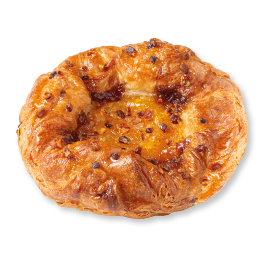 Una gustosa corona danese vegana all'arancia e scaglie di nocciole, realizzata con margarina.