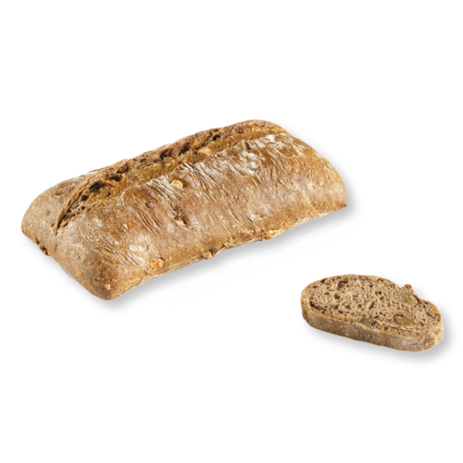 Un pavé delizioso e ricco di nocciole, realizzato con farina di segale e farina d'orzo maltato per un gusto distintivo, una mollica colorata e un aspetto rustico. La ricetta è realizzata con il lievito di frumento, prodotto nei nostri stabilimenti di produzione, per conferirle un carattere più deciso.