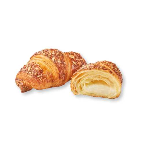 Un croissant hojaldrado con un cremoso relleno de emmental, fundente y crujiente al mismo tiempo.