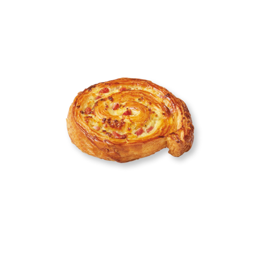 Una girella di pasta sfoglia croccante, composta da una deliziosa besciamella al prosciutto ed emmental.
