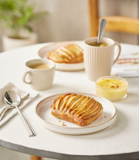 - Una generosa farcitura alla crema pasticcera (34,6%) che la rende una viennoiserie golosa e delicata.