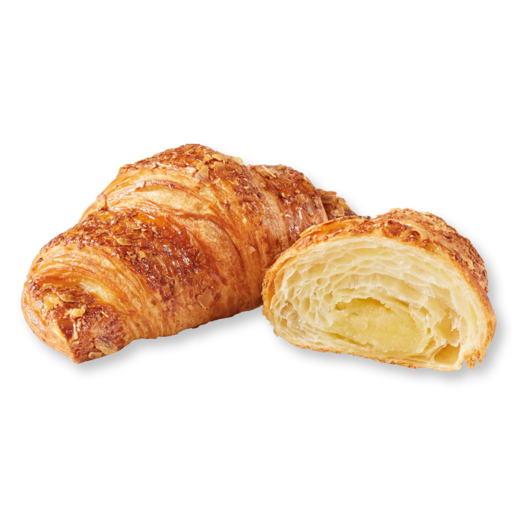 Un bellissimo croissant dorato e brillante con una deliziosa farcitura alle mandorle. Una bella sfoglia regolare grazie alla ricetta a base di puro burro messa a punto grazie al savoir-faire di Bridor.