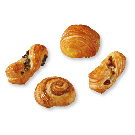 Un puro momento di piacere grazie a 4 generose mini viennoiserie golose: una Mini Treccia al Cioccolato, una Mini Girella alla Cannella, un Mini Extravagant alla Crema e una Mini Treccia al mirtillo rosso.