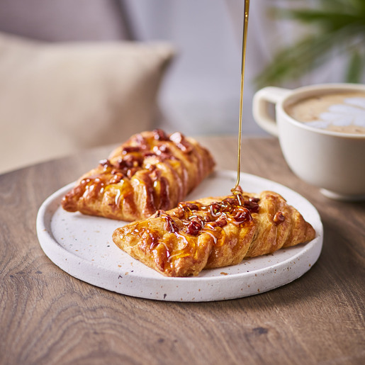 L’associazione perfetta tra la dolcezza dello sciroppo d’acero, la croccantezza delle noci pecan e la consistenza leggera della sua sfoglia rende la Treccia Acero e Noci Pecan una viennoiserie immancabile nelle colazioni e nelle merende golose.